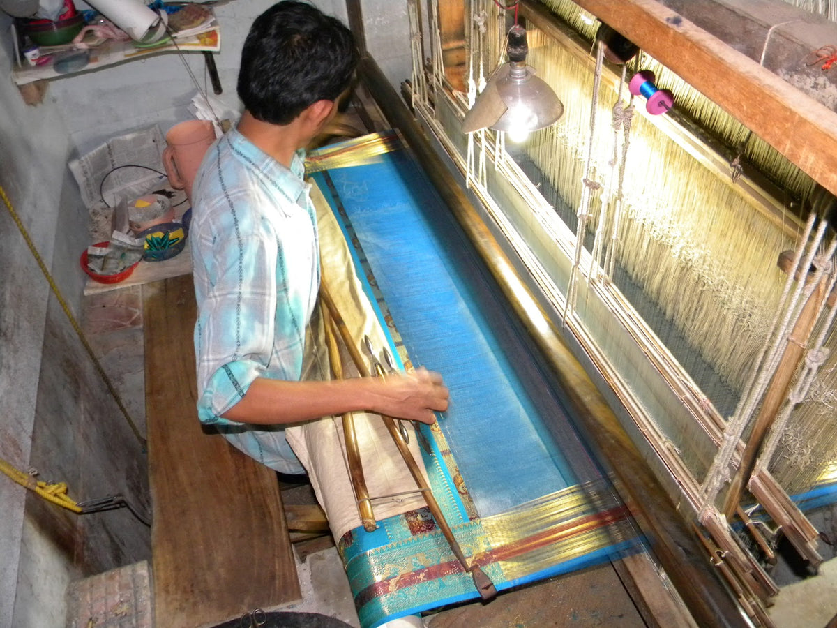 Each saree is a testament to generations of artisan expertise, woven with precision on traditional handlooms.